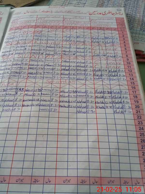 | CNIC | Full Name | Designation | R/C | Absence During Last Calender Month |