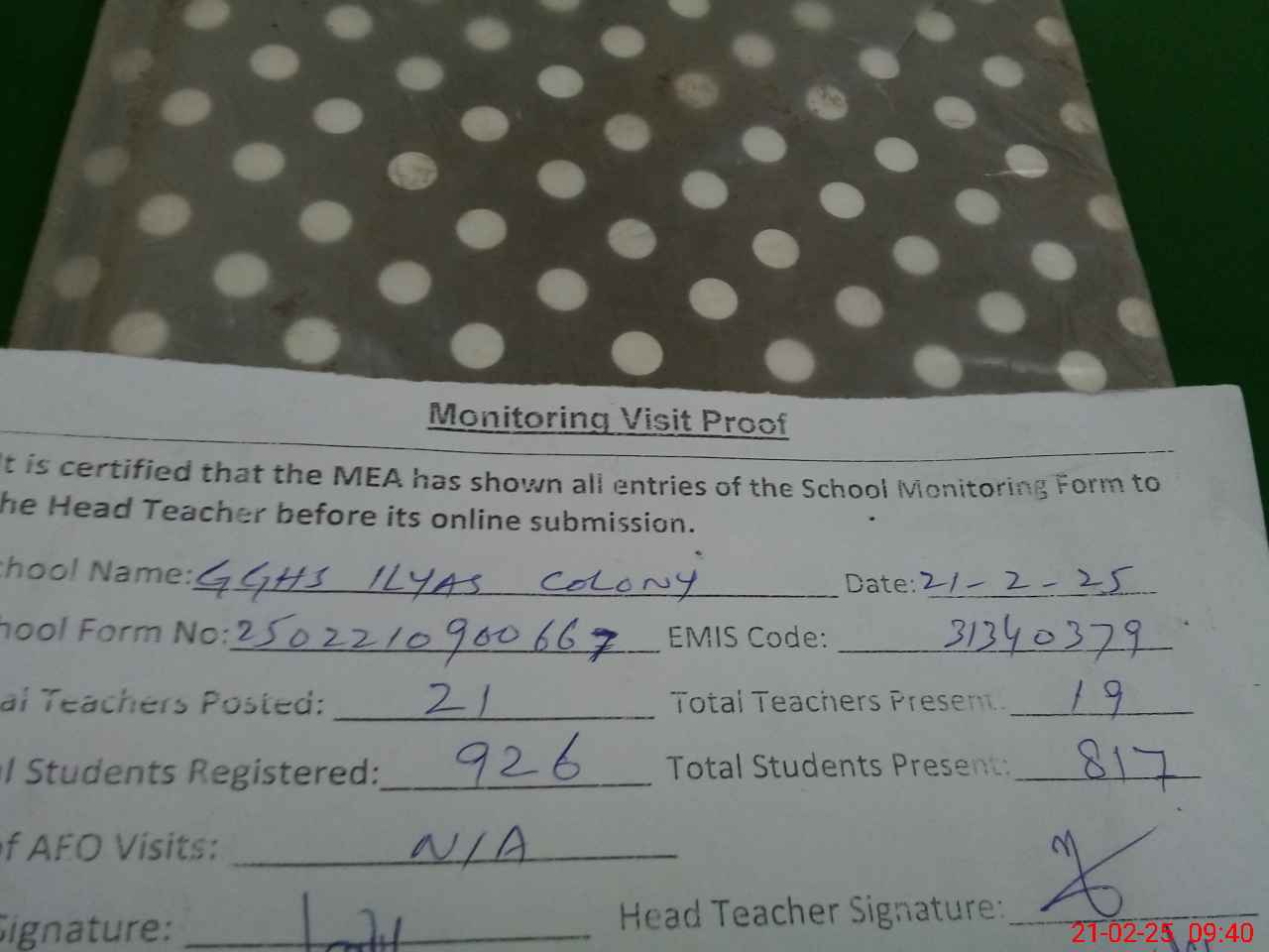 | EMIS Code: 31340379 | Name of School: GGHS ALYAS COLONY | |||