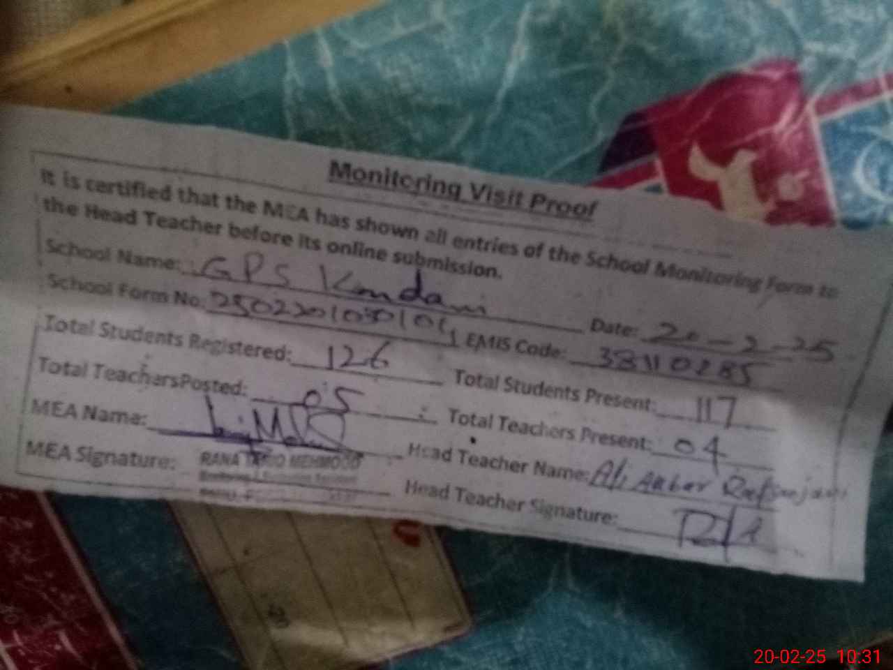 | EMIS Code: 38110285 | Name of School: GPS KANDANI | |||