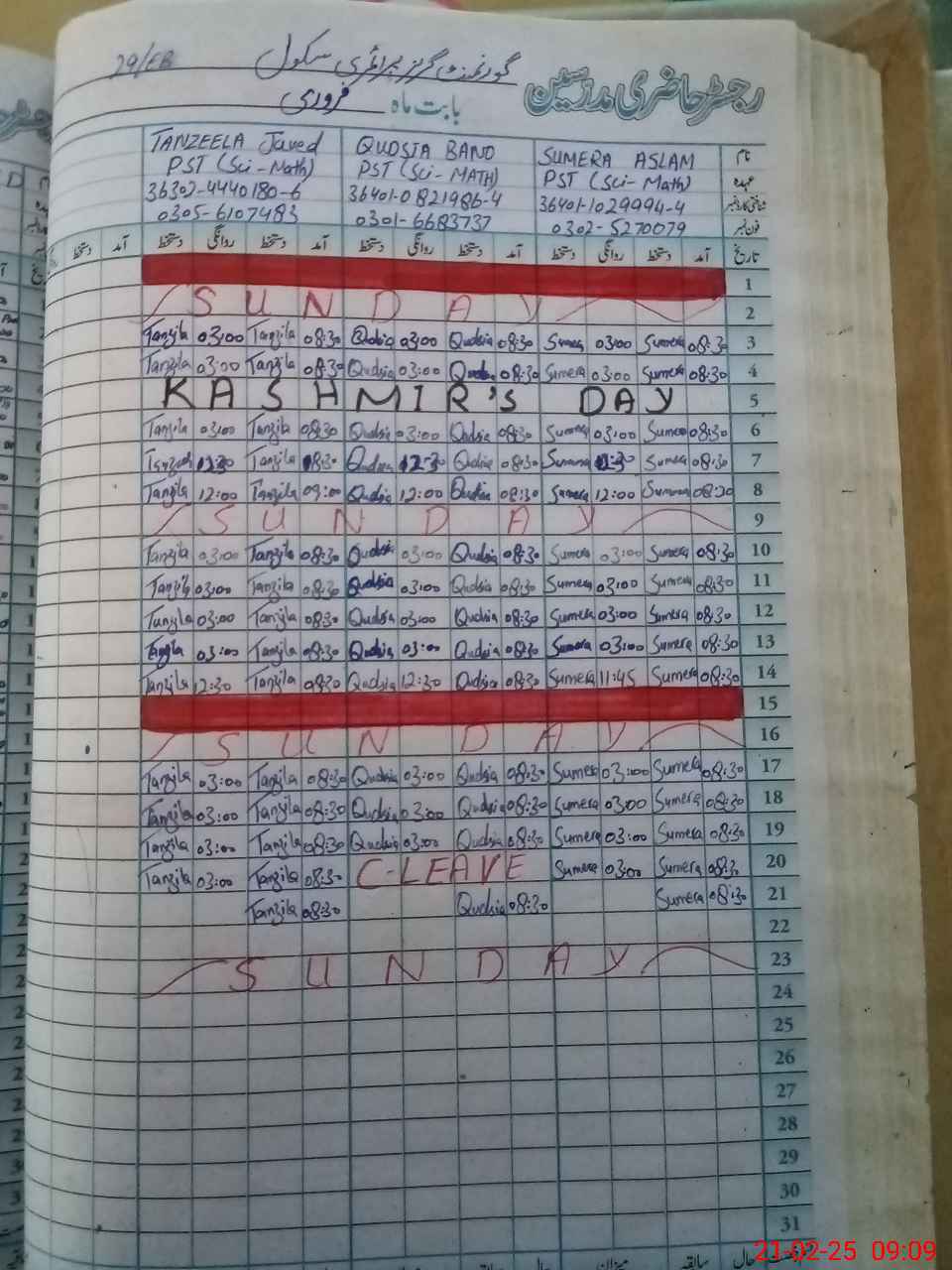 | CNIC | Full Name | Designation | R/C | Absence During Last Calender Month |