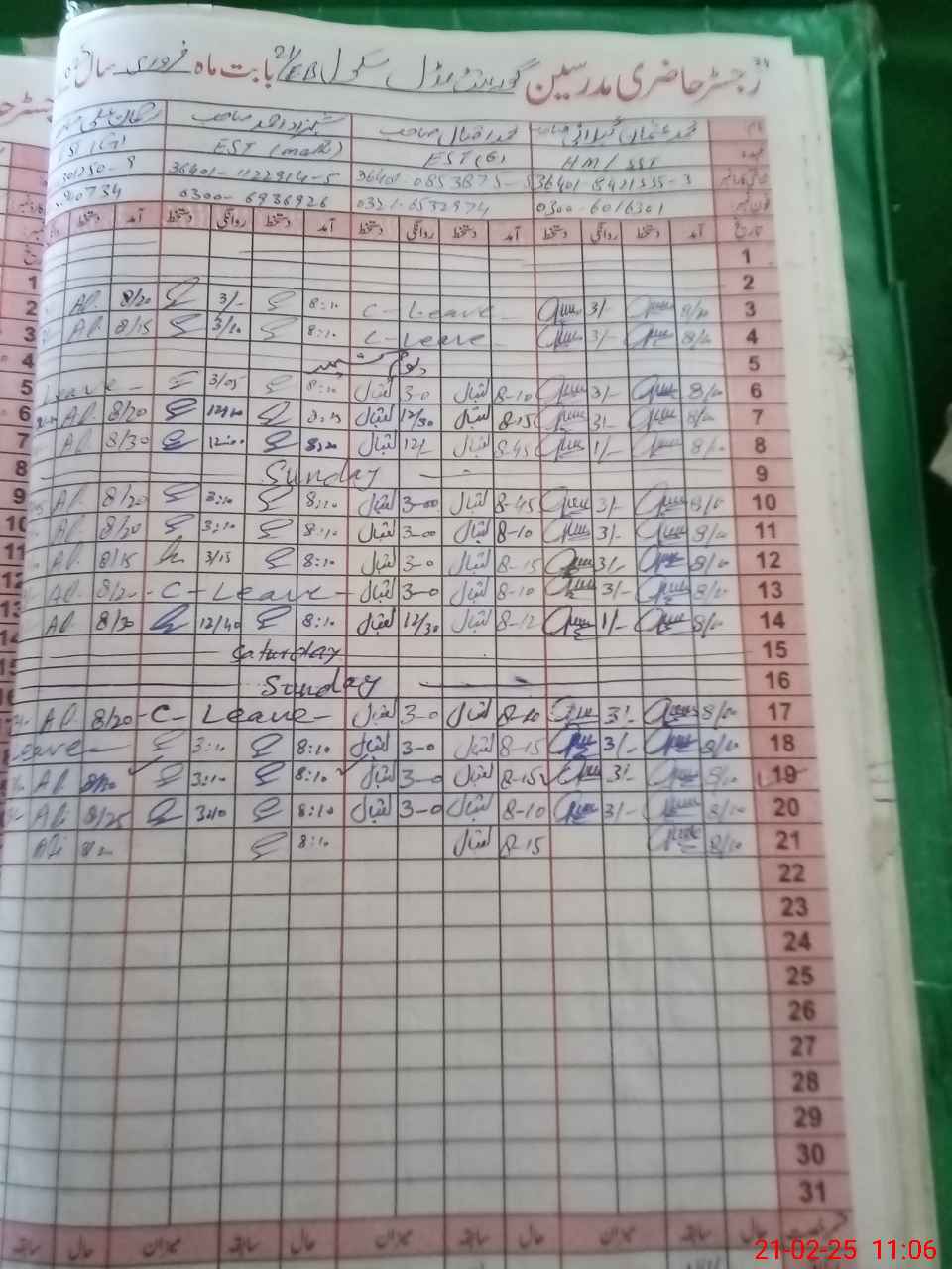 | Name: MU**** US**** Designation: (School Headmaster's/Headmistress's) SST (SCIENCE) Phone/Cell Number: 03**** |