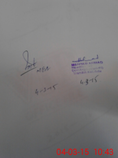 | Monitoring Date: 04-03-2015 | Start Time: 04-03-2015 10:28 AM | End Time: 04-03-2015 10:43 AM | Name of MEA: In**** Ta**** | |