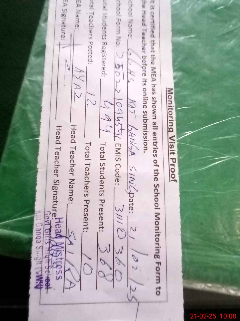 | EMIS Code: 31110360 | Name of School: GGHS KAT GANGA SINGH | |||