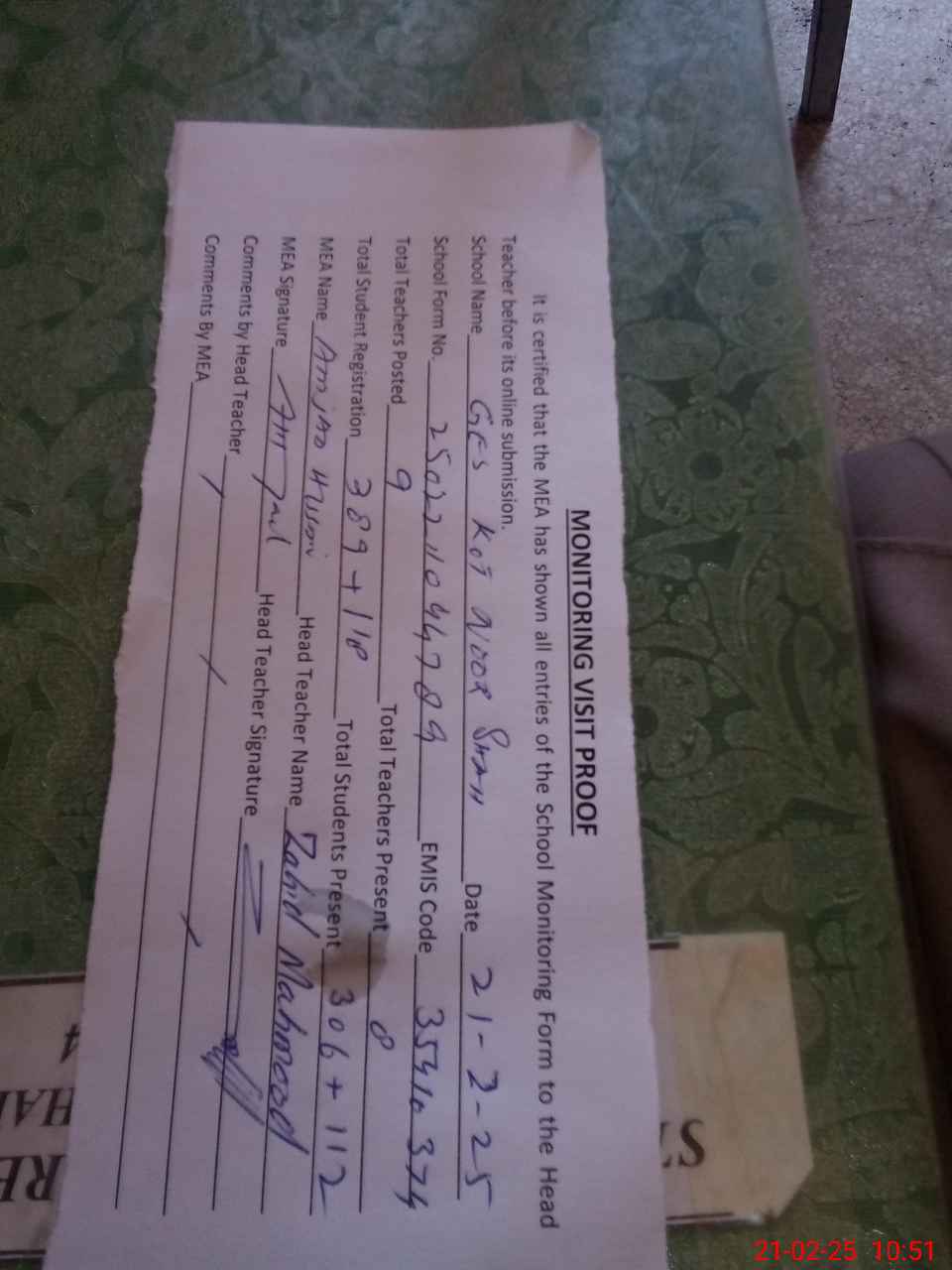 | EMIS Code: 35410374 | Name of School: GES KOT NOOR SHAH | |||