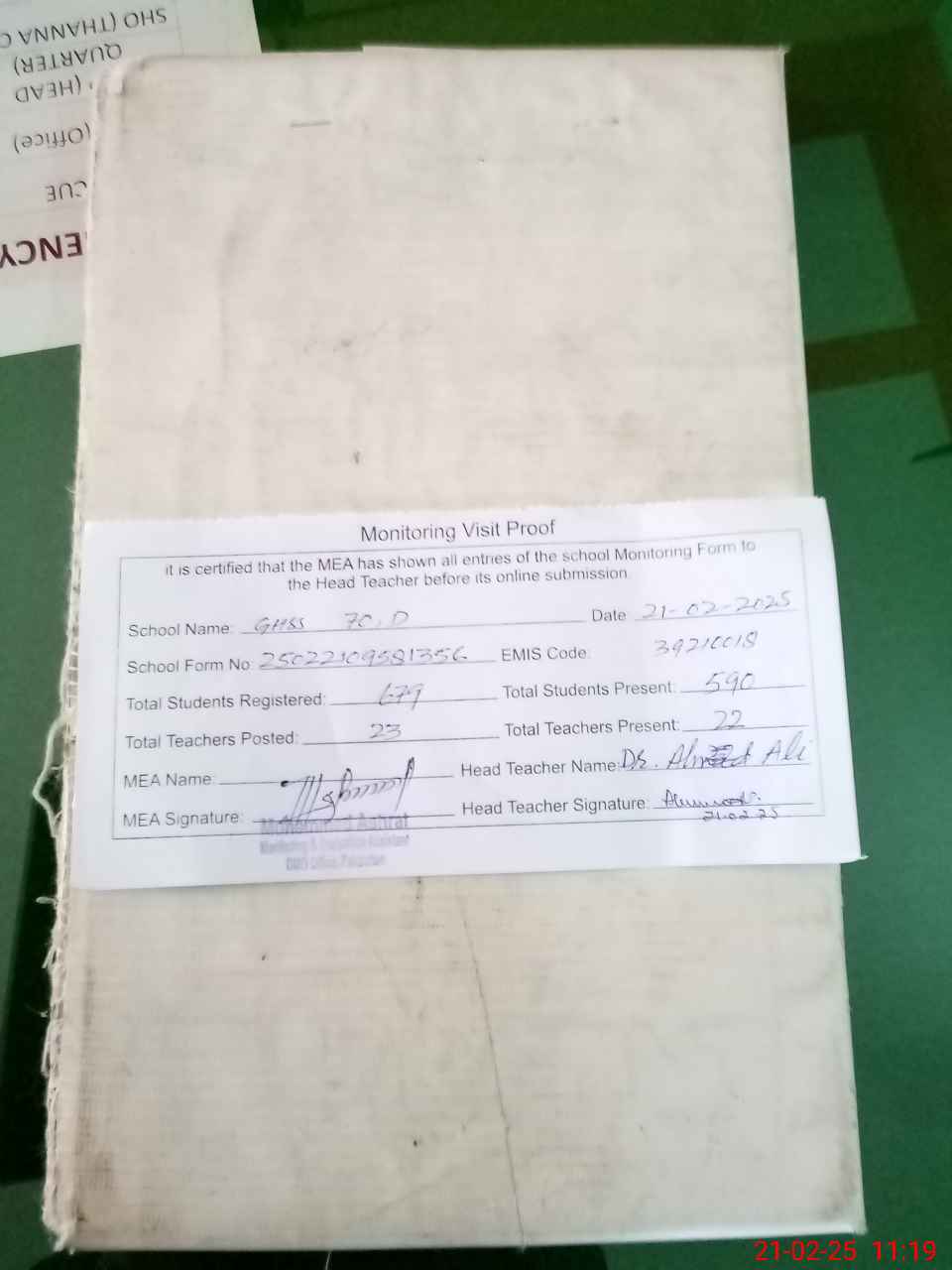| EMIS Code: 39210018 | Name of School: GHSS 70/D | |||