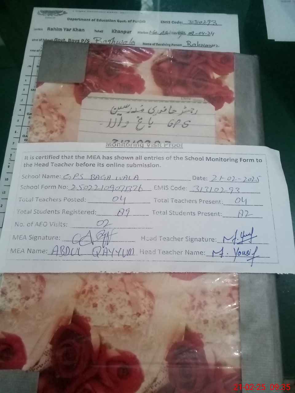 | EMIS Code: 31310293 | Name of School: GPS BAGH WALA | |||