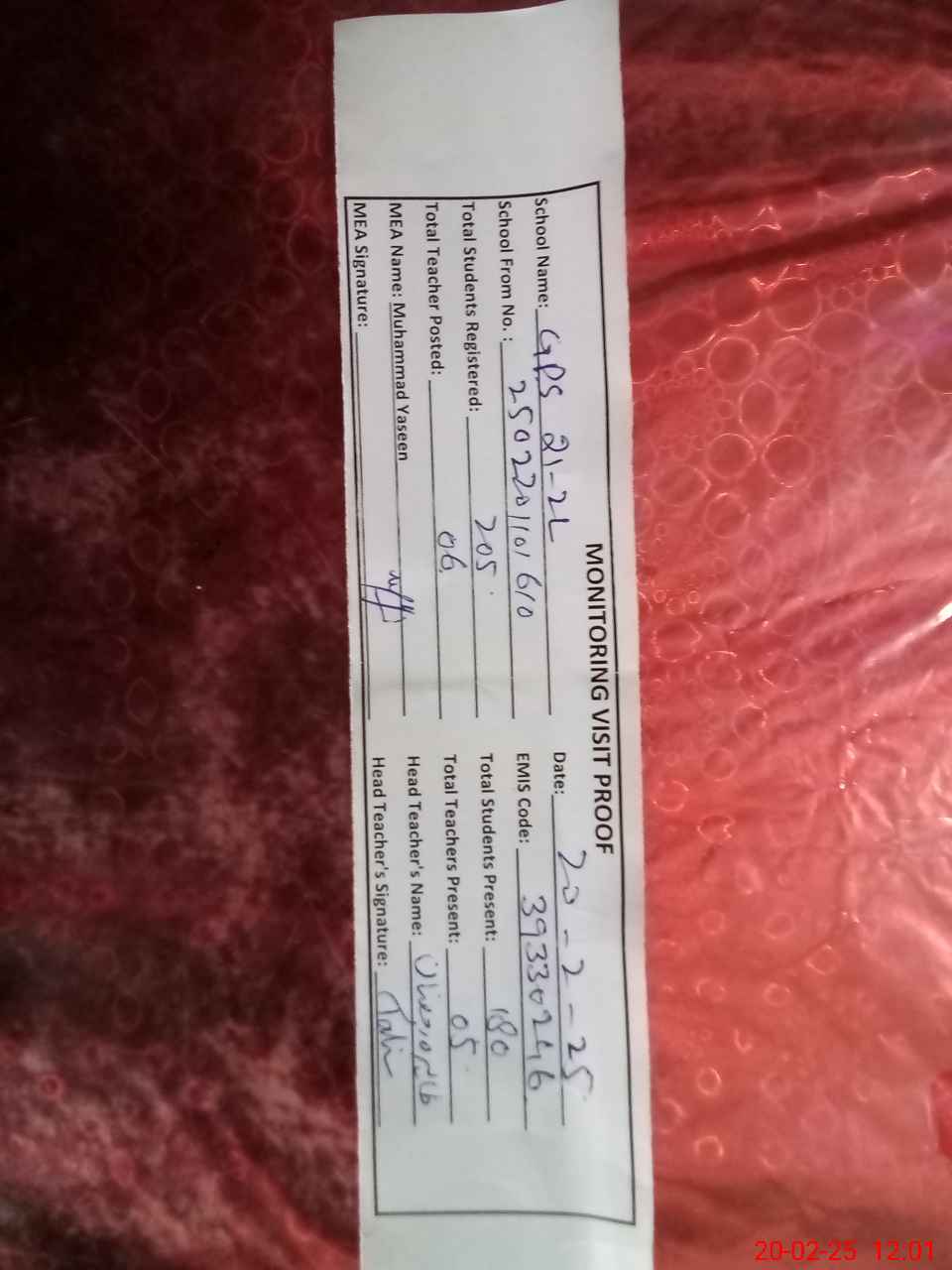 | EMIS Code: 39330266 | Name of School: GPS CHAK 20/2.L | |||