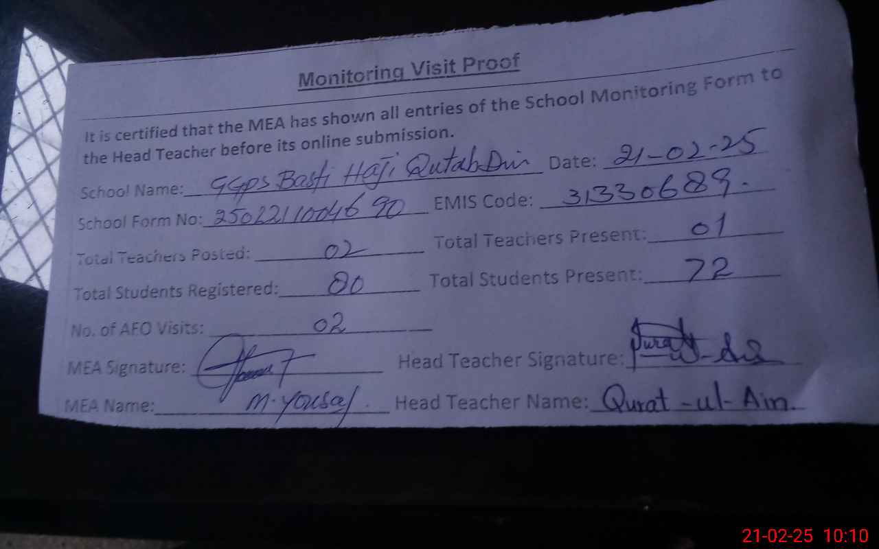 | EMIS Code: 31330689 | Name of School: GGPS BASTI HAJI QUTAB DIN | |||