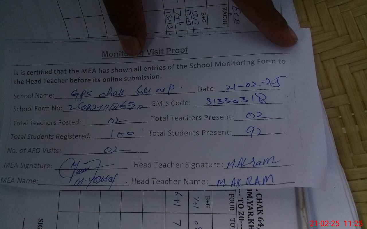 | EMIS Code: 31330318 | Name of School: GPS CHAK NO. 64/NP | |||