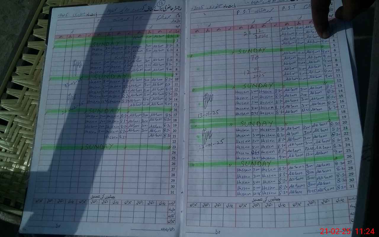 | CNIC | Full Name | Designation | R/C | Absence During Last Calender Month |