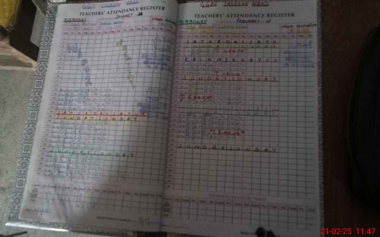 | Total no. of Classrooms: 2 No. of Classrooms Used for Teaching: 2 No. of Classrooms Storing Old Furniture, FTBs, etc: 0Comments if Any: Head teacher on short leave NSB and books record not shown |
