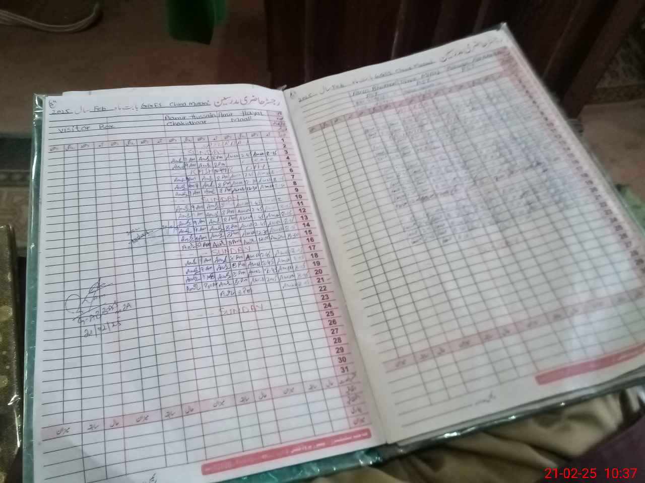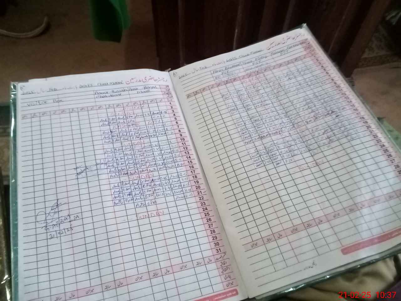 | CNIC | Full Name | Designation | R/C | Absence During Last Calender Month |