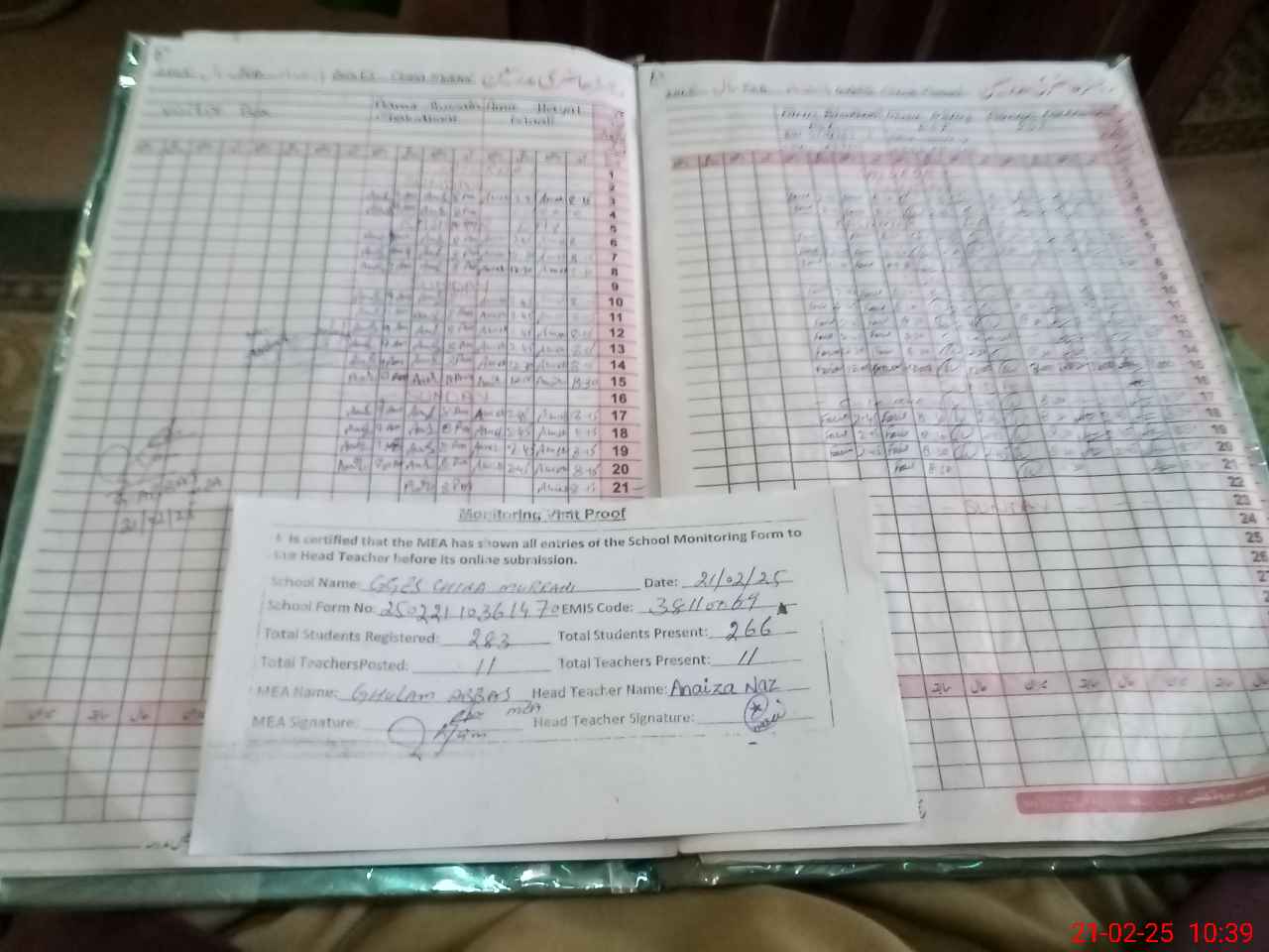 | Attendance Register | Head Teacher | MEA with School | Visit Proof |