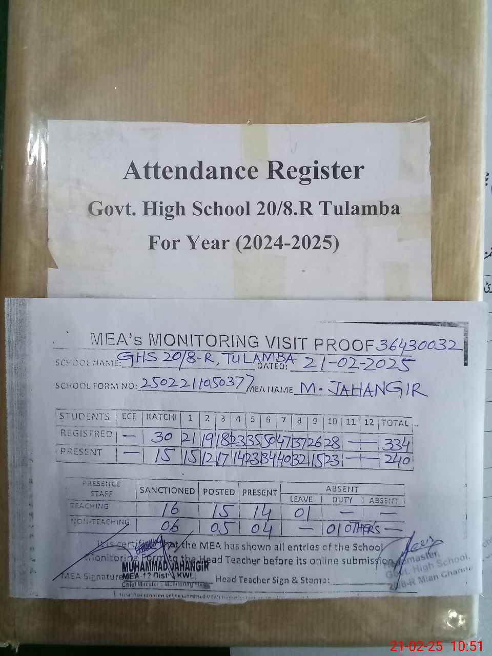 | EMIS Code: 36430032 | Name of School: GHS 20/8-R, TULAMBA | |||
