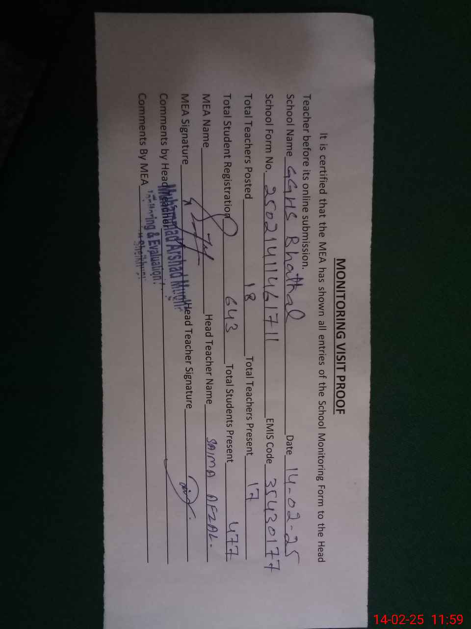 | EMIS Code: 35430177 | Name of School: GGHS BHATHAL | |||