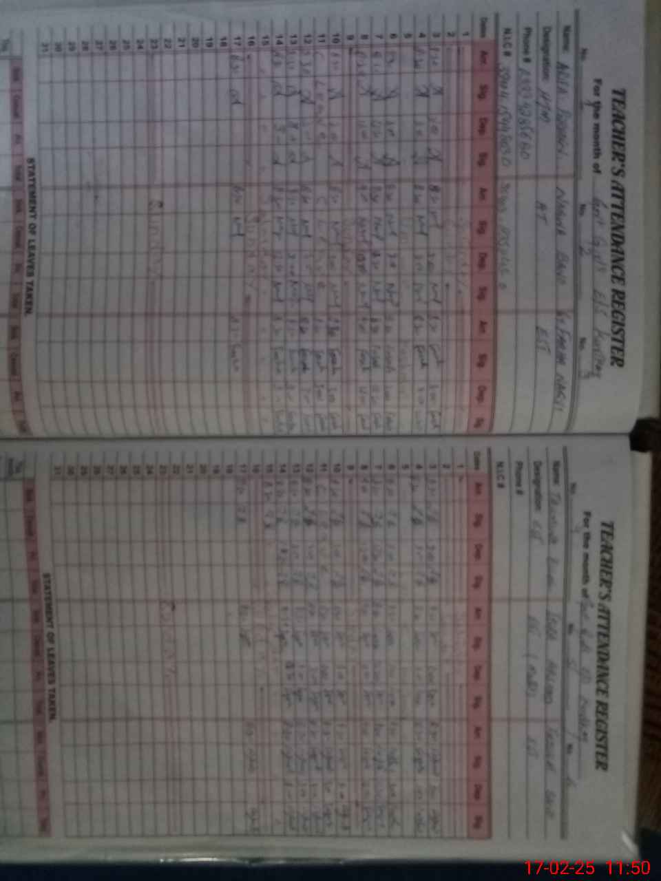 | Name: AR**** PE**** Designation: (School Headmaster's/Headmistress's) S.S.T.(art) Phone/Cell Number: 03**** |