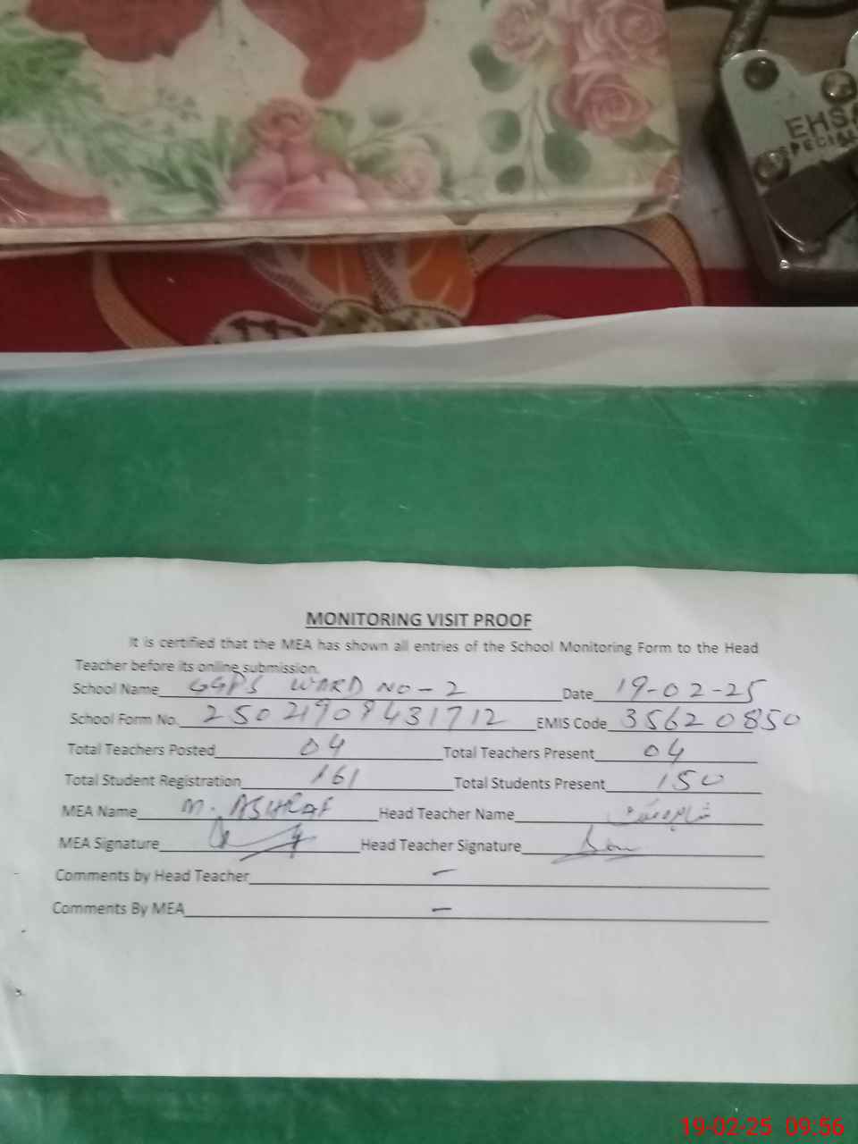 | EMIS Code: 35620850 | Name of School: GGPS WARD NO.2 THATHA ASIYA | |||