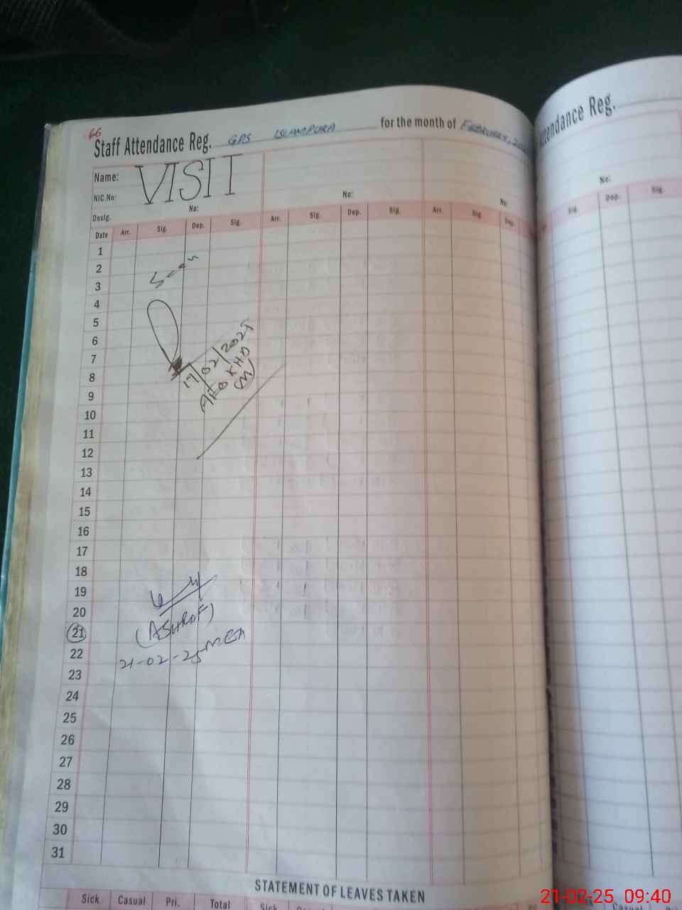 | Sr.No. | Visit Date | Designation | ||