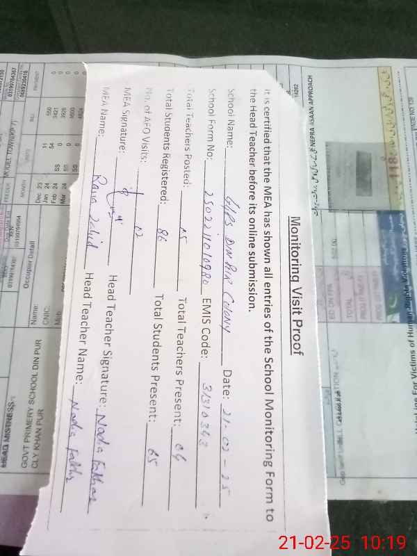 | Certified that this School was Inspected by the Undersigned MEA/DMO Today and the Information Stated Above is as Per Record. | |||||