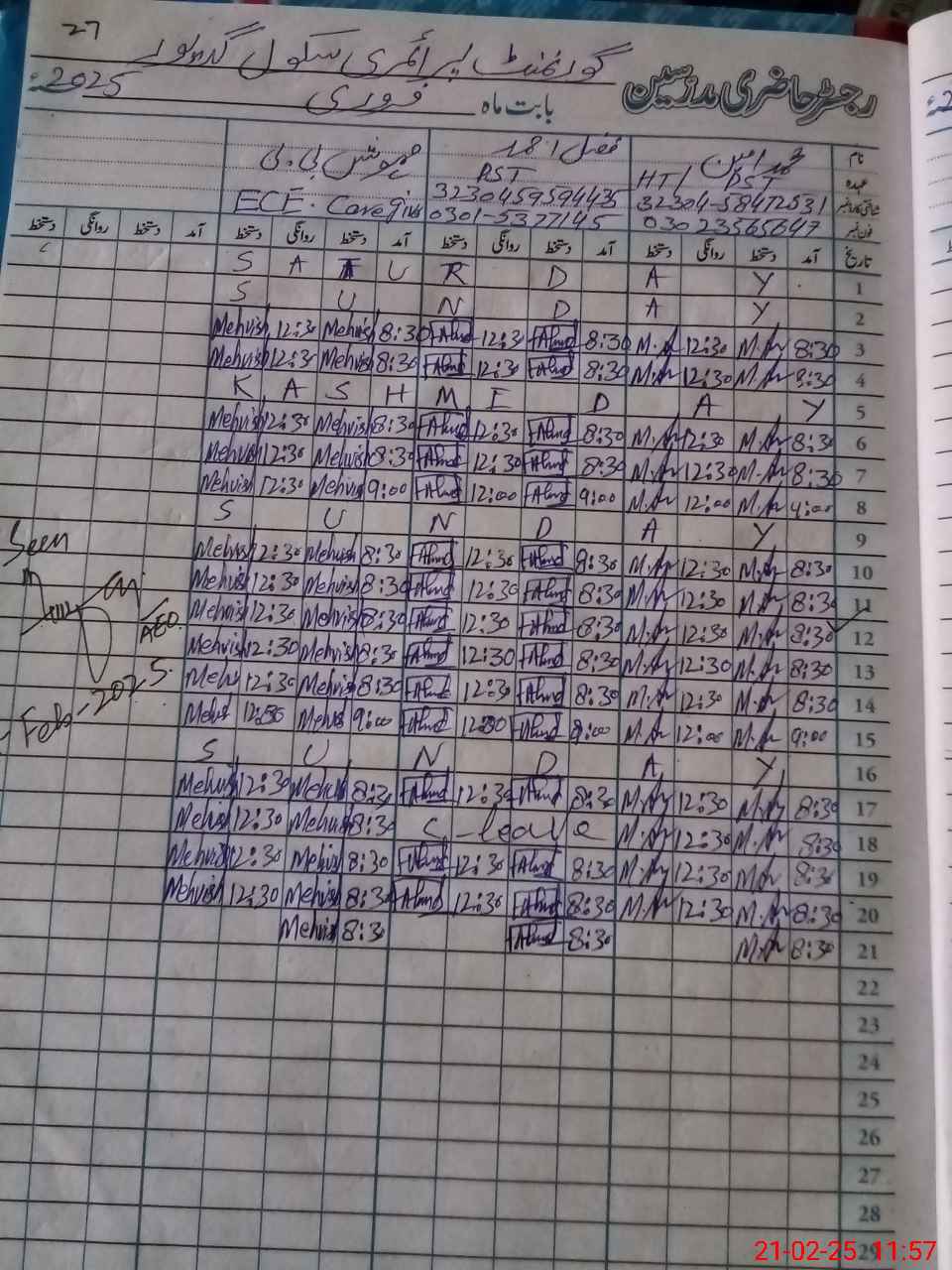 | Name: AL**** HU**** Designation: (School Headmaster's/Headmistress's) PST/PTC/JV Phone/Cell Number: 03**** |
