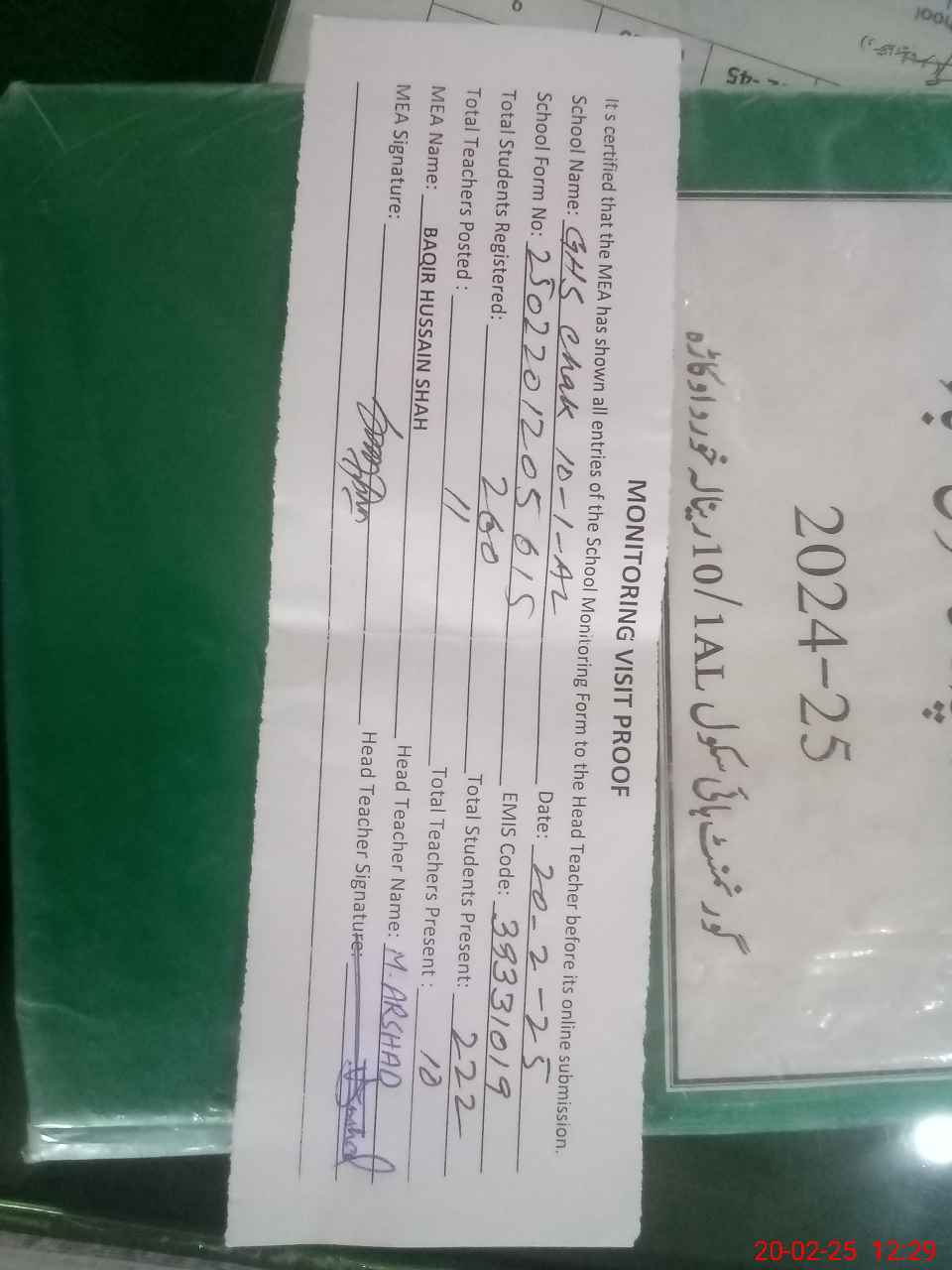 | EMIS Code: 39331019 | Name of School: GHS CHAK 10/1-AL | |||