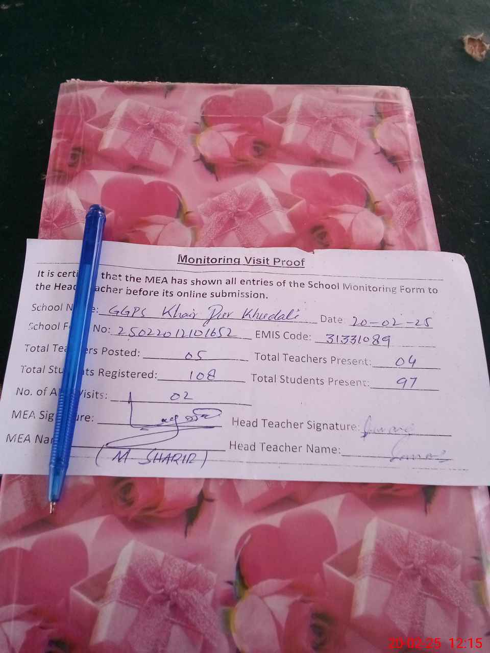 | EMIS Code: 31331089 | Name of School: GGPS KHAIR PUR KHADALI | |||