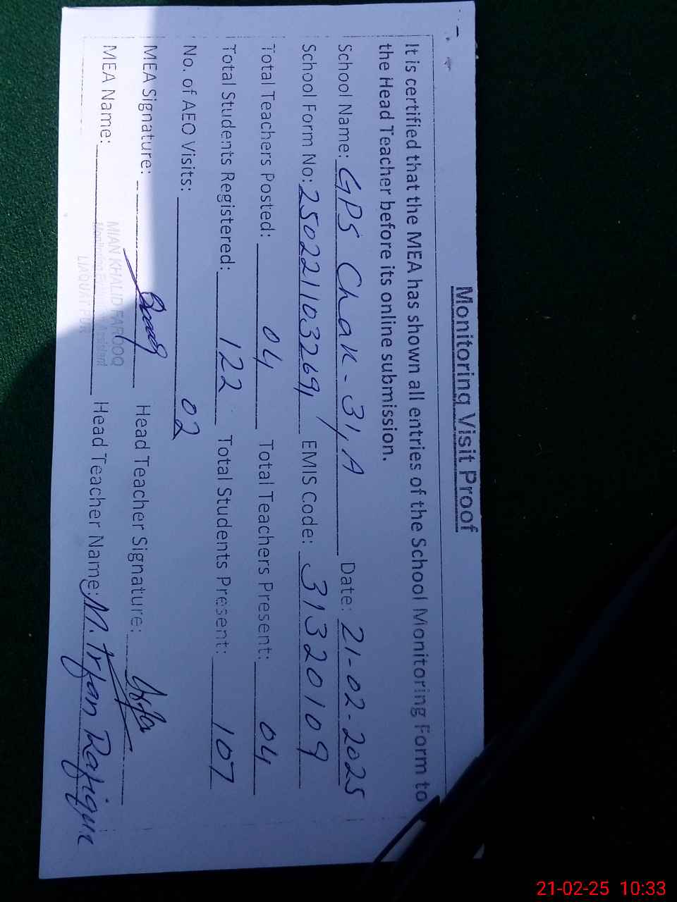 | EMIS Code: 31320109 | Name of School: GPS CHAK 31 A | |||
