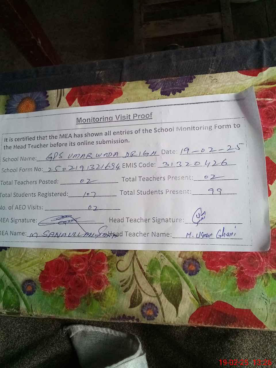 | EMIS Code: 31320426 | Name of School: GPS UMAR WADA DRIGH | |||