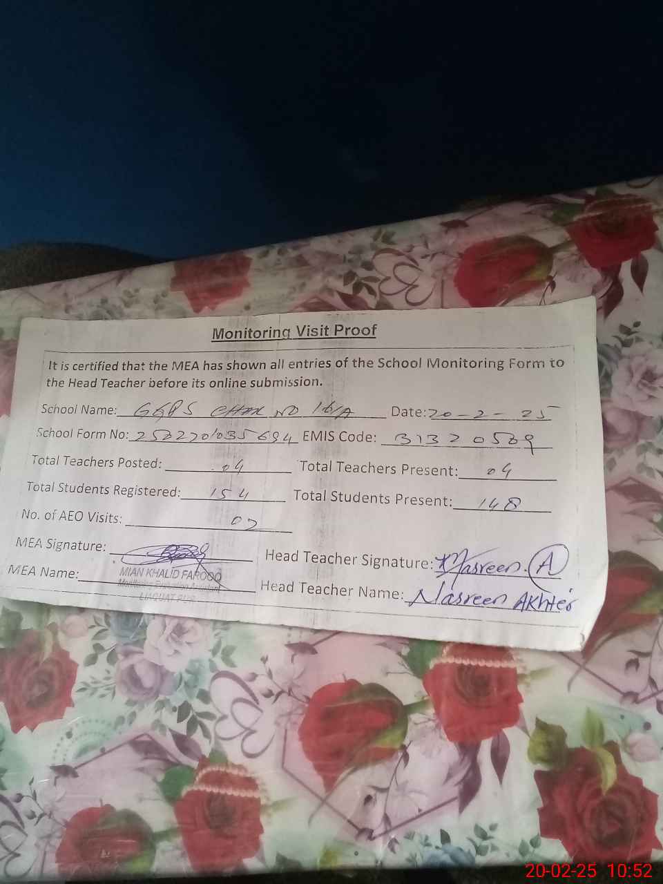 | EMIS Code: 31320509 | Name of School: GGPS CHAK NO.16/A | |||