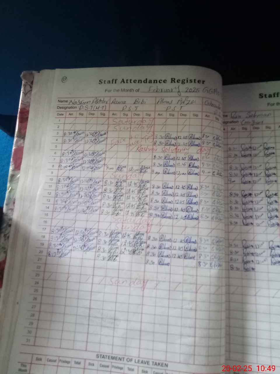 | Name: NA**** AK**** Designation: (School Headmaster's/Headmistress's) PST Phone/Cell Number: 03**** |