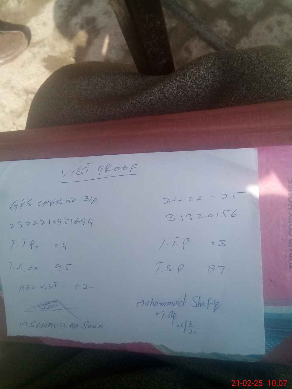 | Monitoring Date: 21-02-2025 | Start Time: 21-02-2025 09:50 AM | End Time: 21-02-2025 10:07 AM | Name of MEA: Mu**** Sa**** Ul**** Sa**** | |