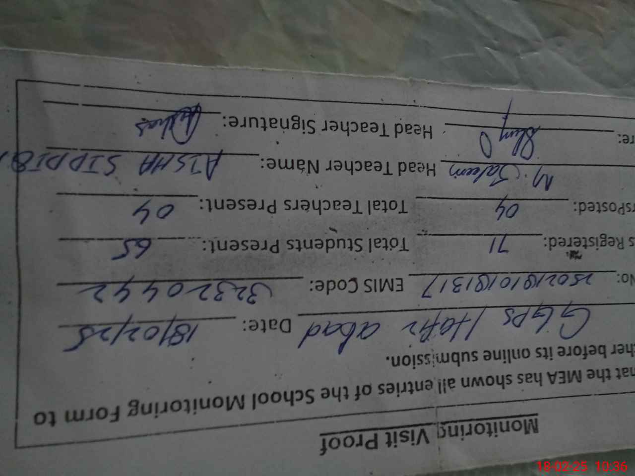 | Name: Ai**** Sa**** Designation: (School Headmaster's/Headmistress's) PST Phone/Cell Number: 03**** |