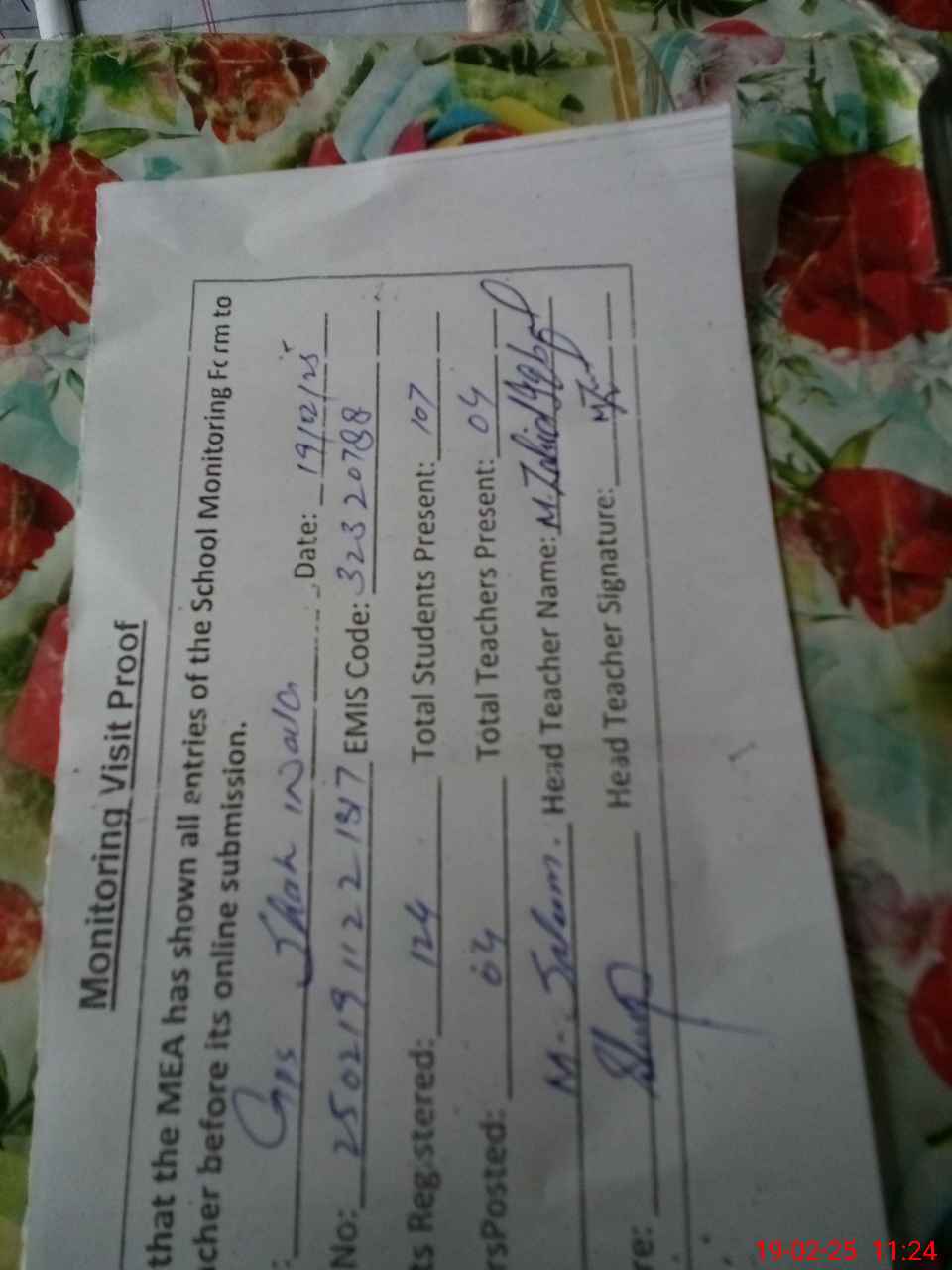 | EMIS Code: 32320788 | Name of School: GPS SHAH WALA | |||