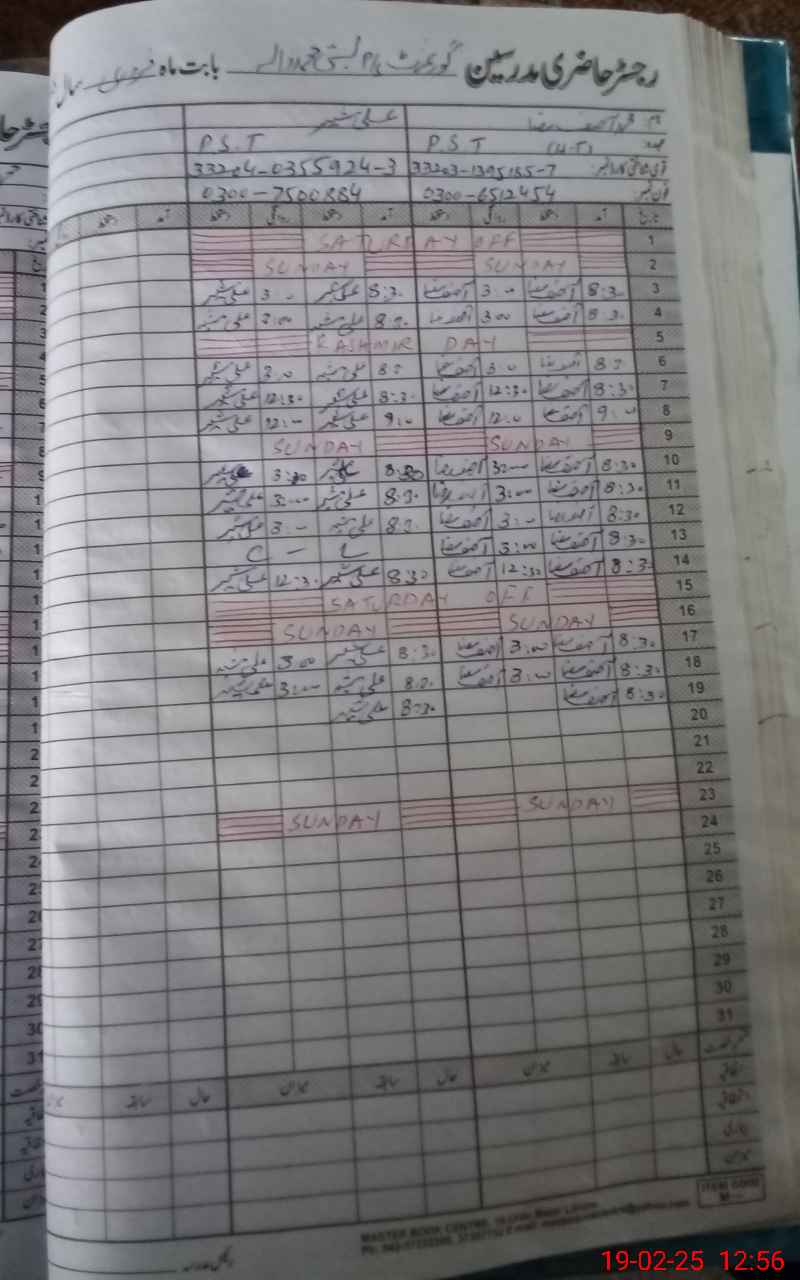 | Name: MAS**** RA**** Designation: (School Headmaster's/Headmistress's) PST Phone/Cell Number: 03**** |