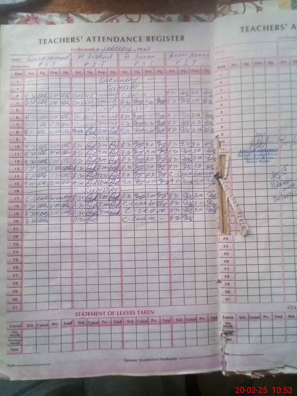 | Name: Qa**** Ha**** Designation: (School Headmaster's/Headmistress's) PST Phone/Cell Number: 03**** |