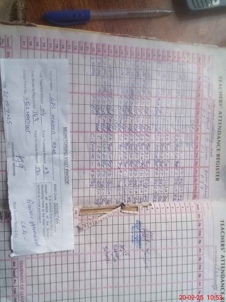 | EMIS Code: 32330766 | Name of School: GPS MASOOD ABAD | |||