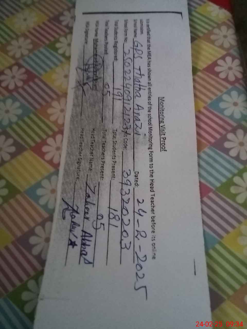 | EMIS Code: 39320203 | Name of School: GPS THATHA ARAZI | |||