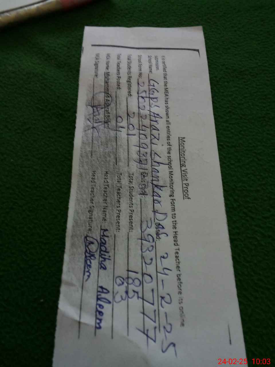 | EMIS Code: 39320777 | Name of School: GGPS ARAZI SHANKAR DAS | |||