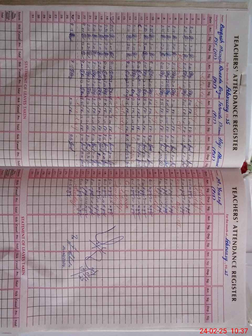 | Leave | Duty | Absent | Maternity | Medical | Ex- Pak |