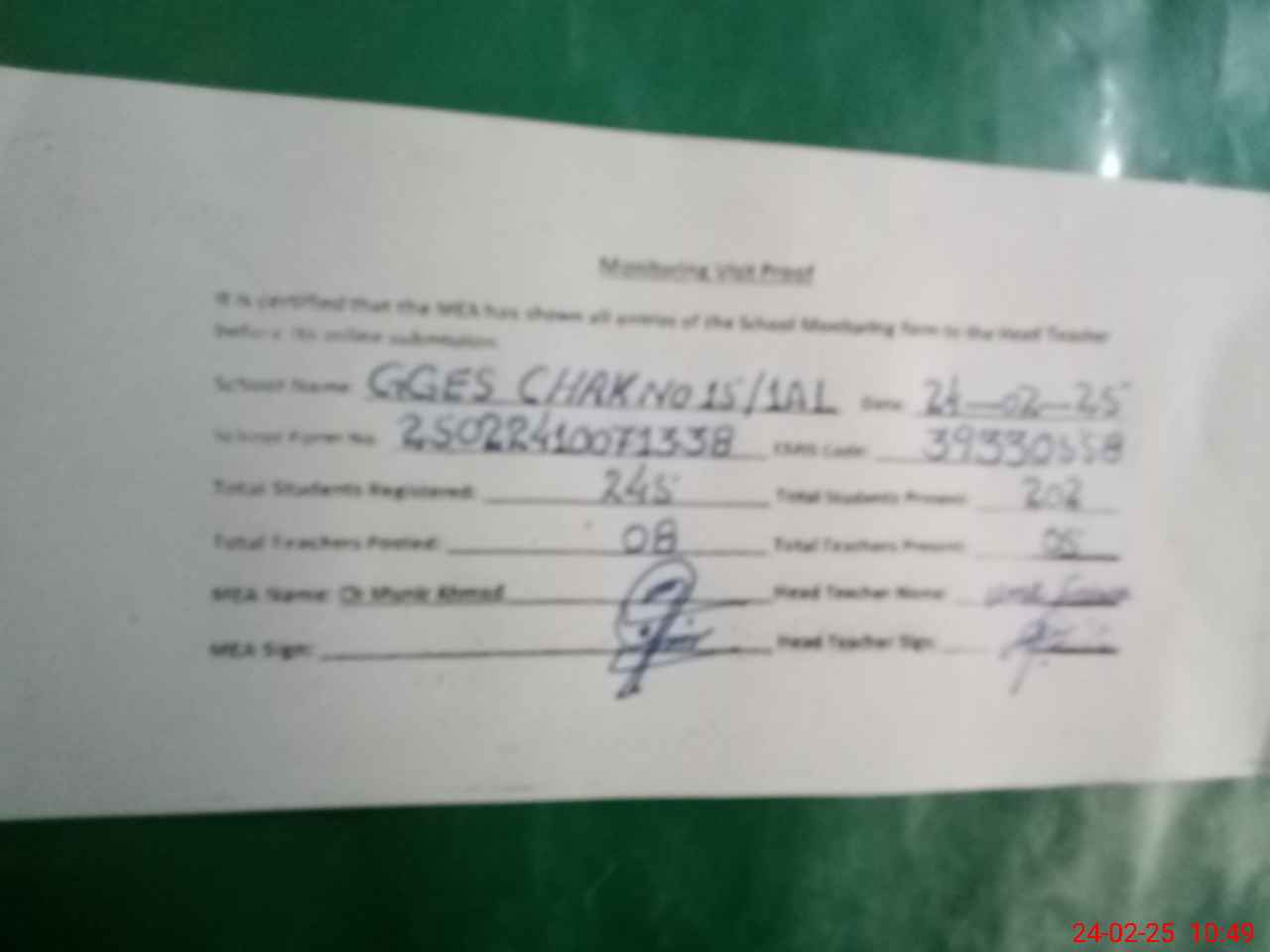 | Certified that this School was Inspected by the Undersigned MEA/DMO Today and the Information Stated Above is as Per Record. | |||||