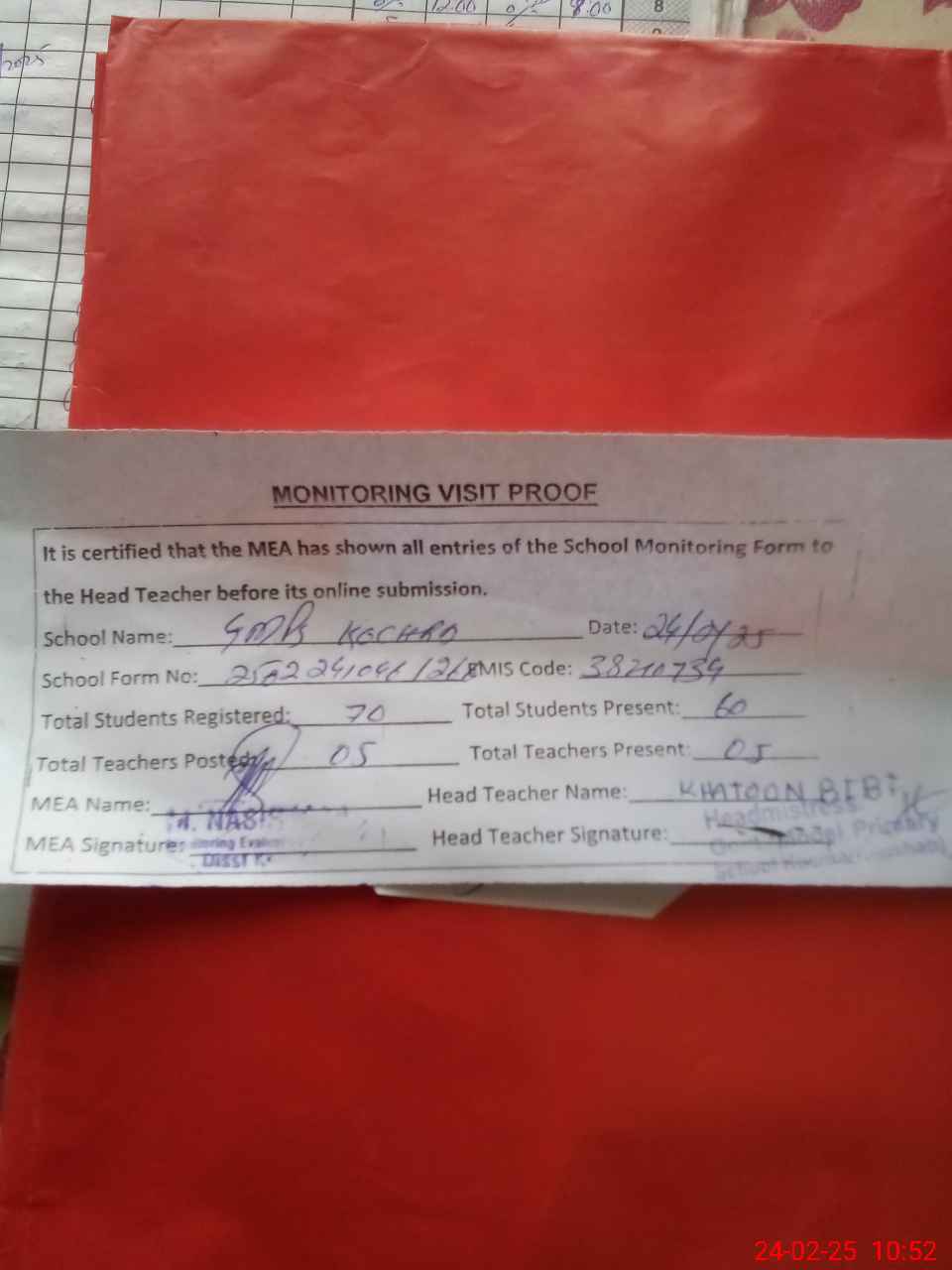 | EMIS Code: 38210734 | Name of School: GMPS KOCHRA | |||