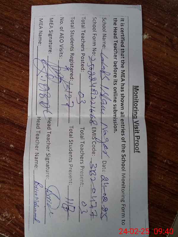 | Certified that this School was Inspected by the Undersigned MEA/DMO Today and the Information Stated Above is as Per Record. | |||||
