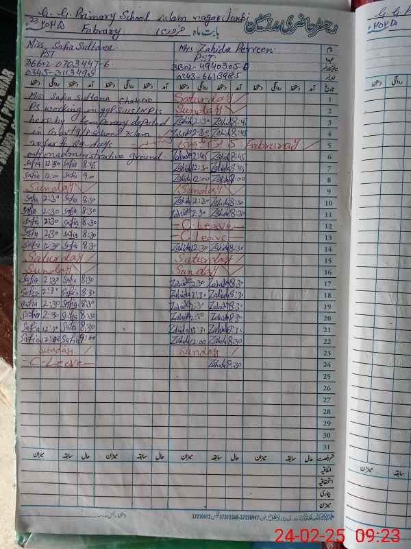 | CNIC | Full Name | Designation | R/C | Absence During Last Calender Month |