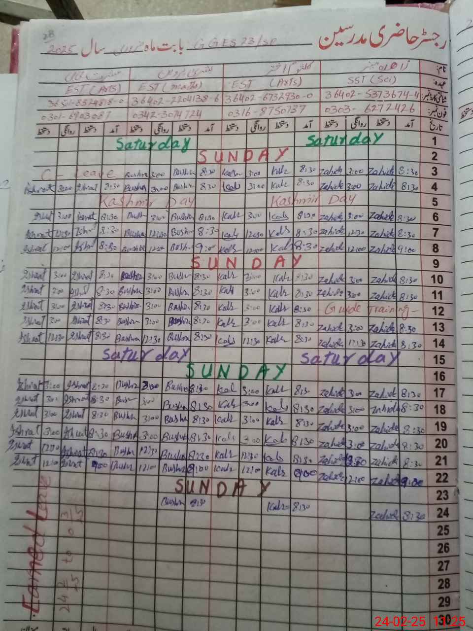 | Leave | Duty | Absent | Maternity | Medical | Ex- Pak |