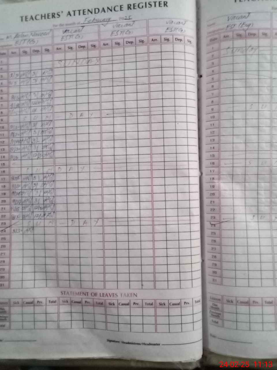 | Leave | Duty | Absent | Maternity | Medical | Ex- Pak |