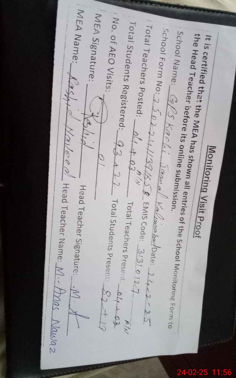 | EMIS Code: 31310127 | Name of School: GPS KACHI JAMAL KALIM ABAD (After Noon) | |||