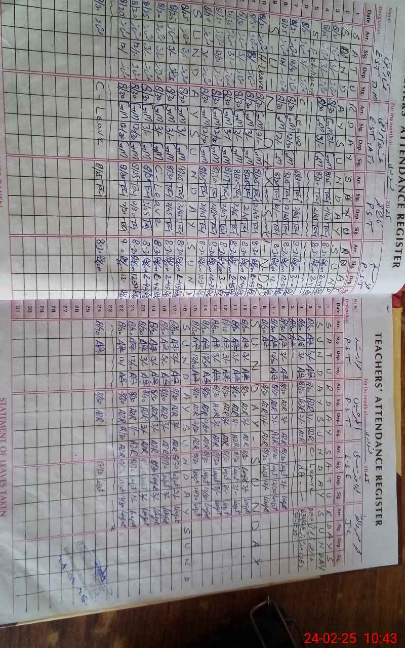 | CNIC | Full Name | Designation | R/C | Absence During Last Calender Month |