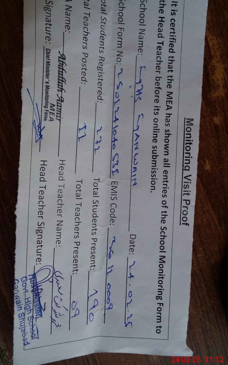 | EMIS Code: 36120009 | Name of School: GHS GAWAIN MOZA GANWEN TEH. SHUJABAD | |||