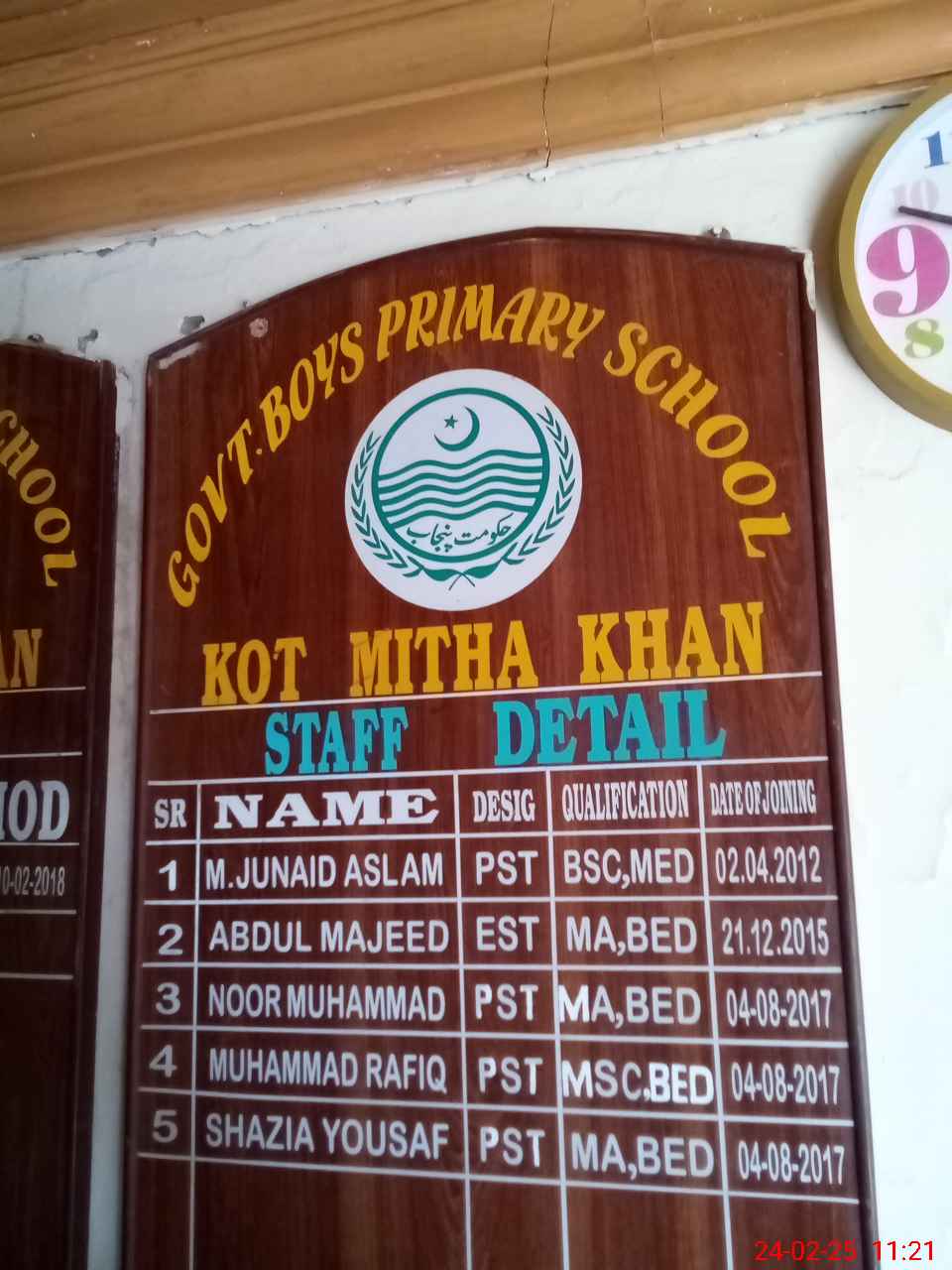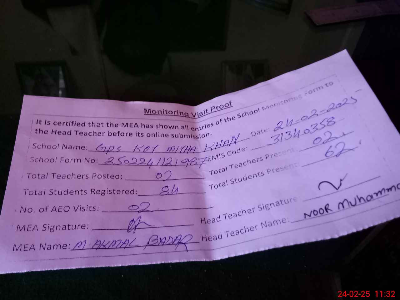 | EMIS Code: 31340358 | Name of School: GPS KOT MITHA KHAN | |||