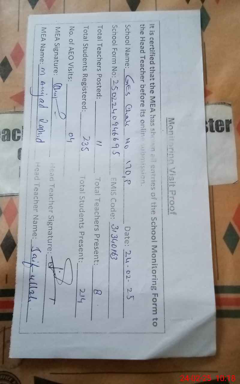 | EMIS Code: 31340163 | Name of School: GES CHAK NO 170/P | |||
